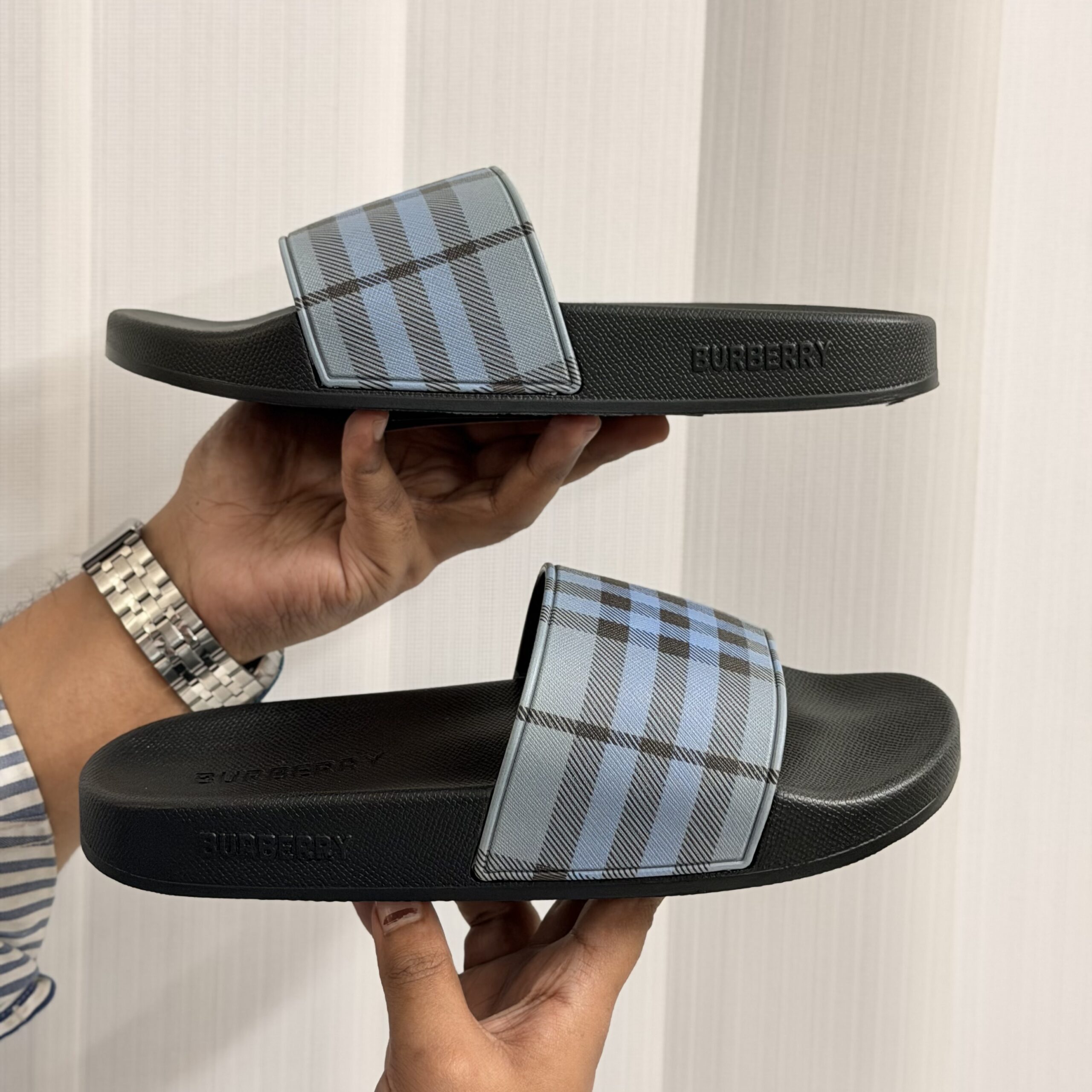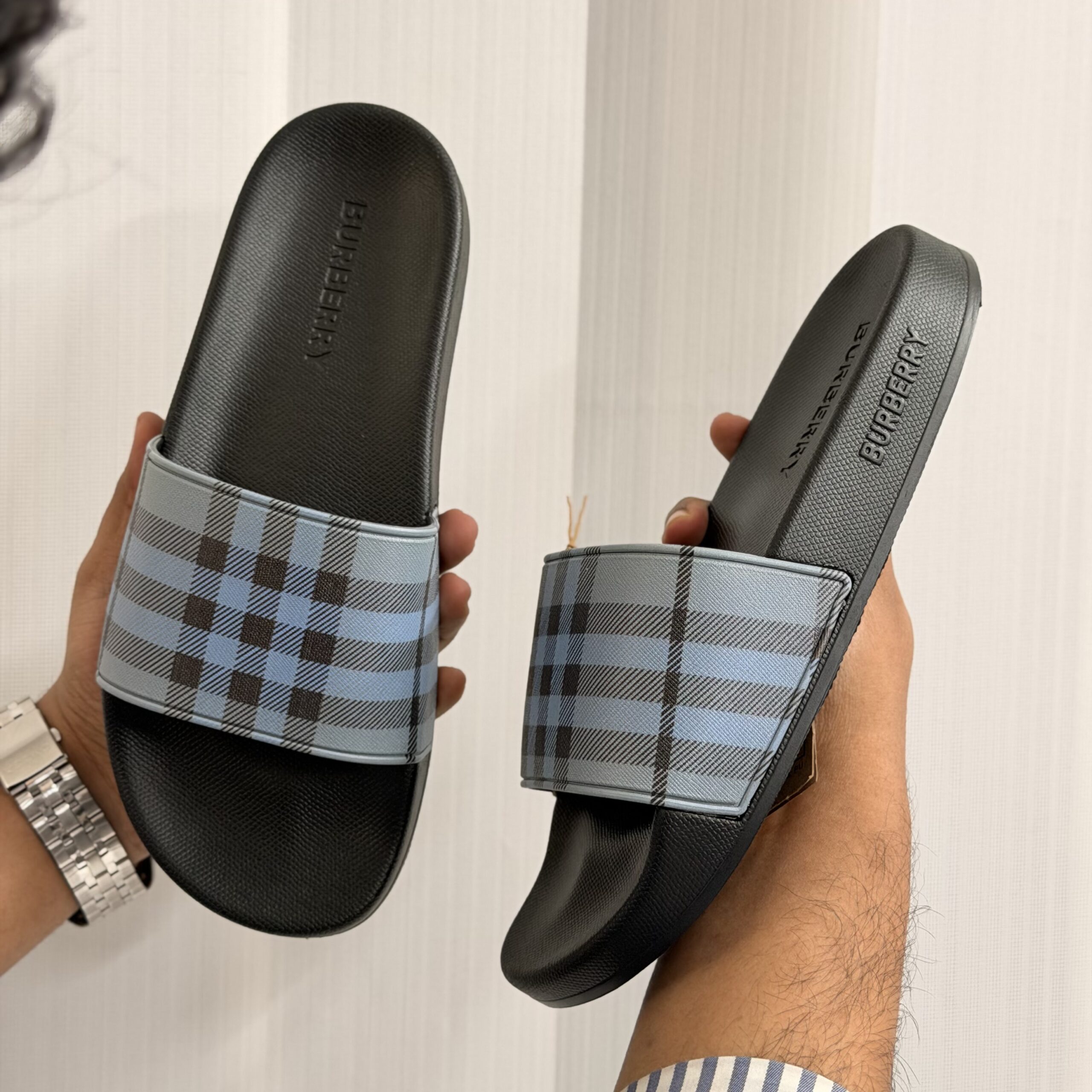 Premium Quality Burberry Slipper -Black Blue